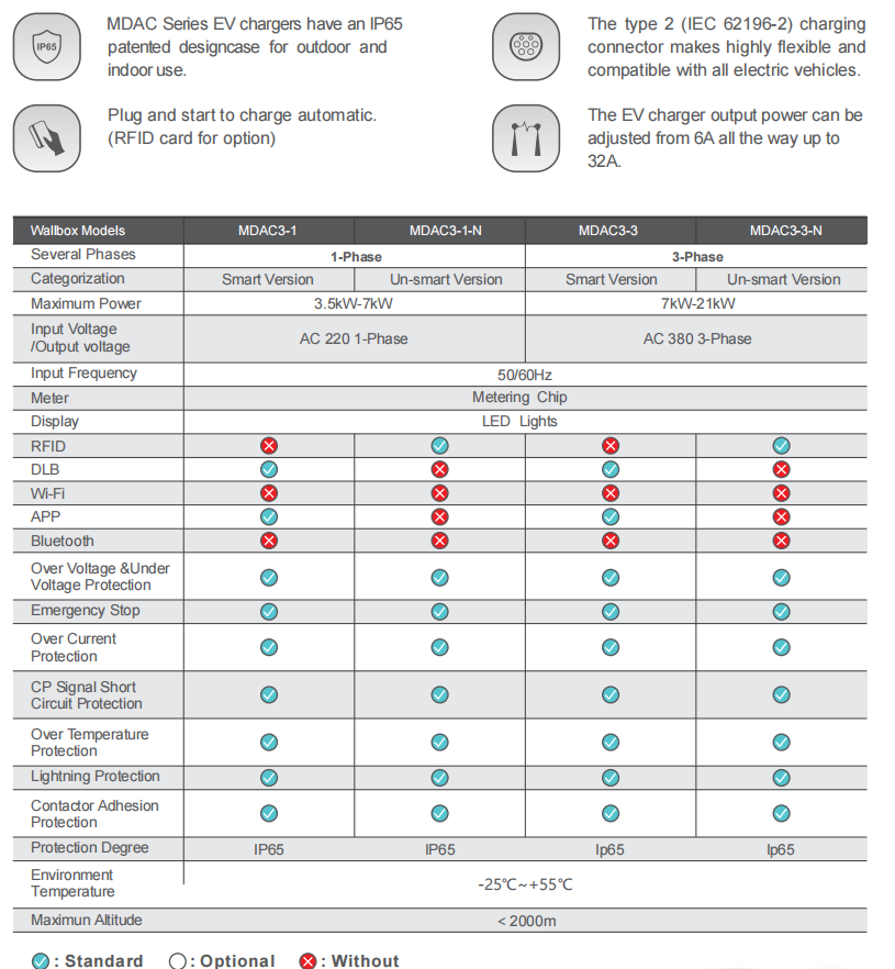 1) نطاق قوة الشاحن EV: 3.5kw ~ 21kw.